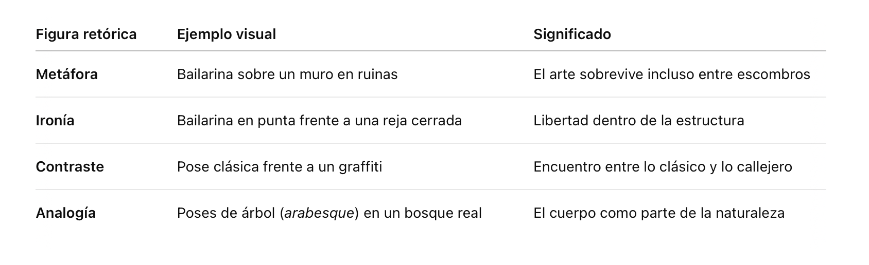 (Metonimia visual): el cuerpo como símbolo del alma que se expresa.